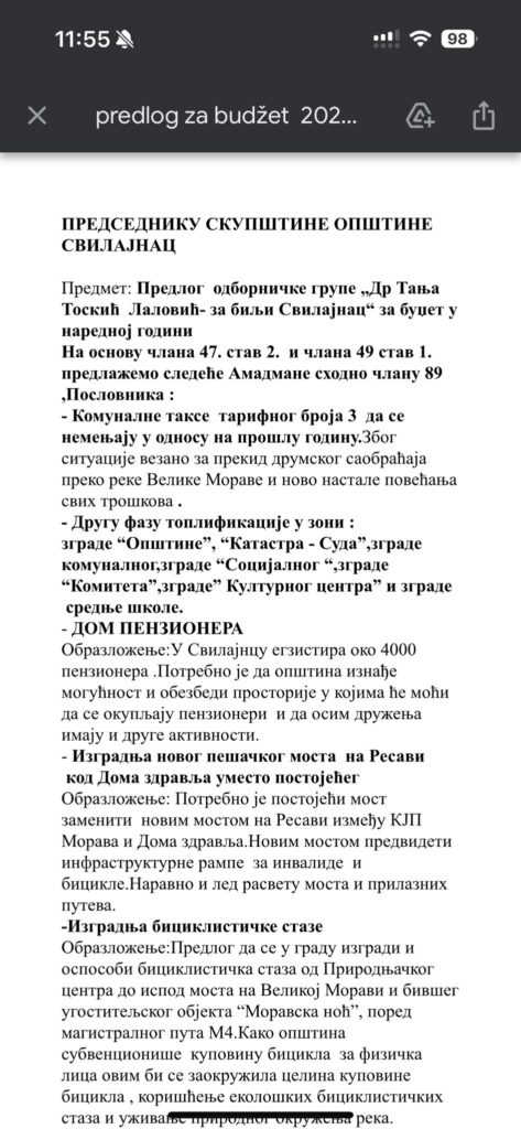 У прилогу овог текста остављамо вам предлоге које смо званичним путем послали председнику СО Свилајнац (један од њих можете наћи и у претходним објавама).