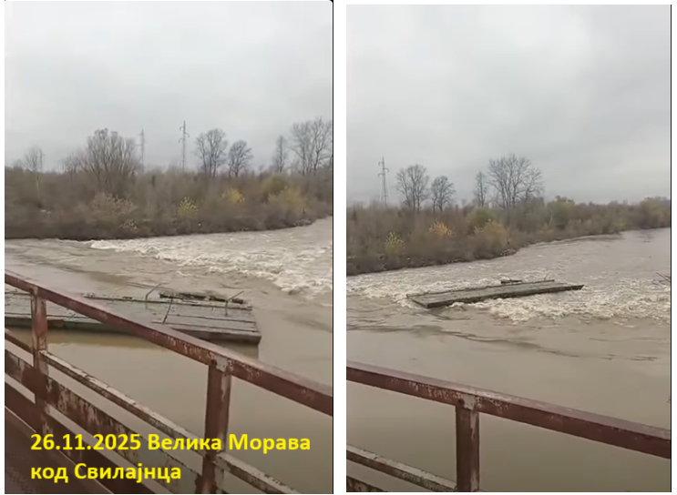 - Део понтонског моста је однела набујала Велика Морава (26.11.2025)